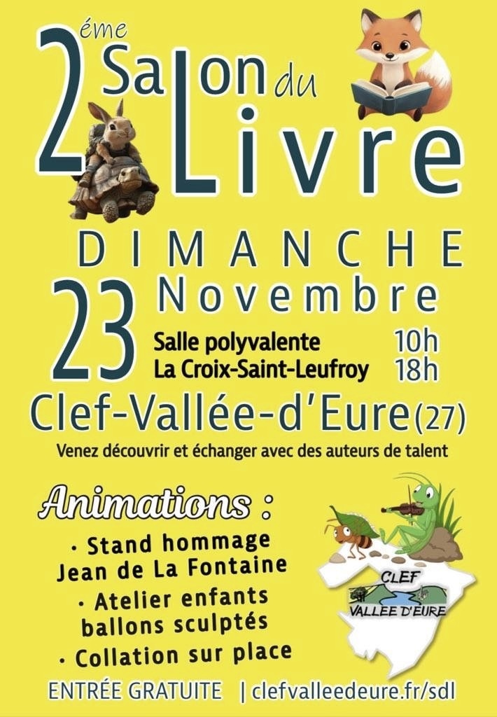 - Le dimanche 23 novembre : 3e salon du livre de la Croix-St-Leufroy (Clef-Vallée-d'Eure, 27)